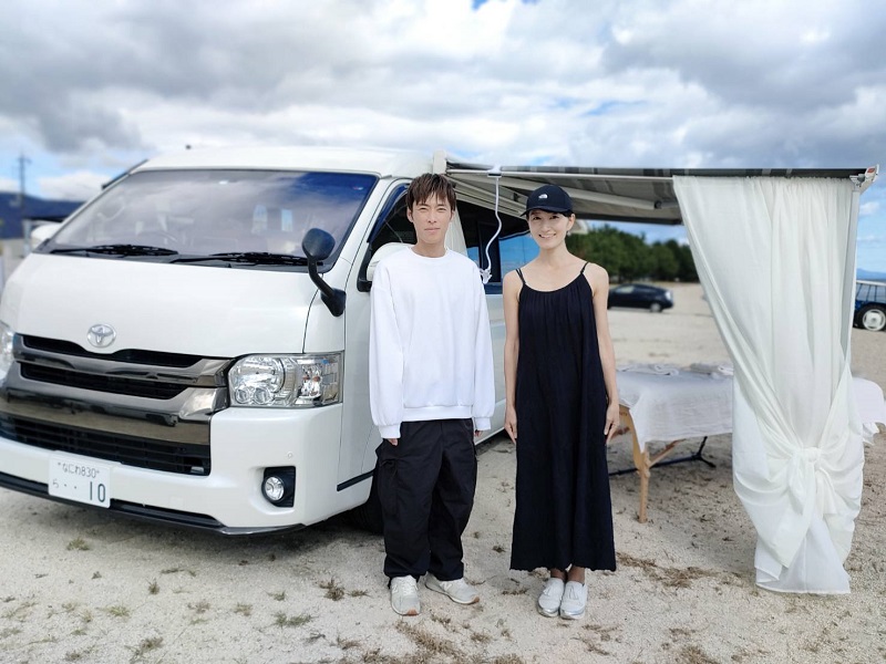 キャンピングカーのサイドオーニングを広げての「絶景セラピー®」