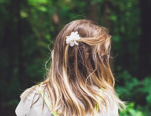 後ろを向いている少女の画像